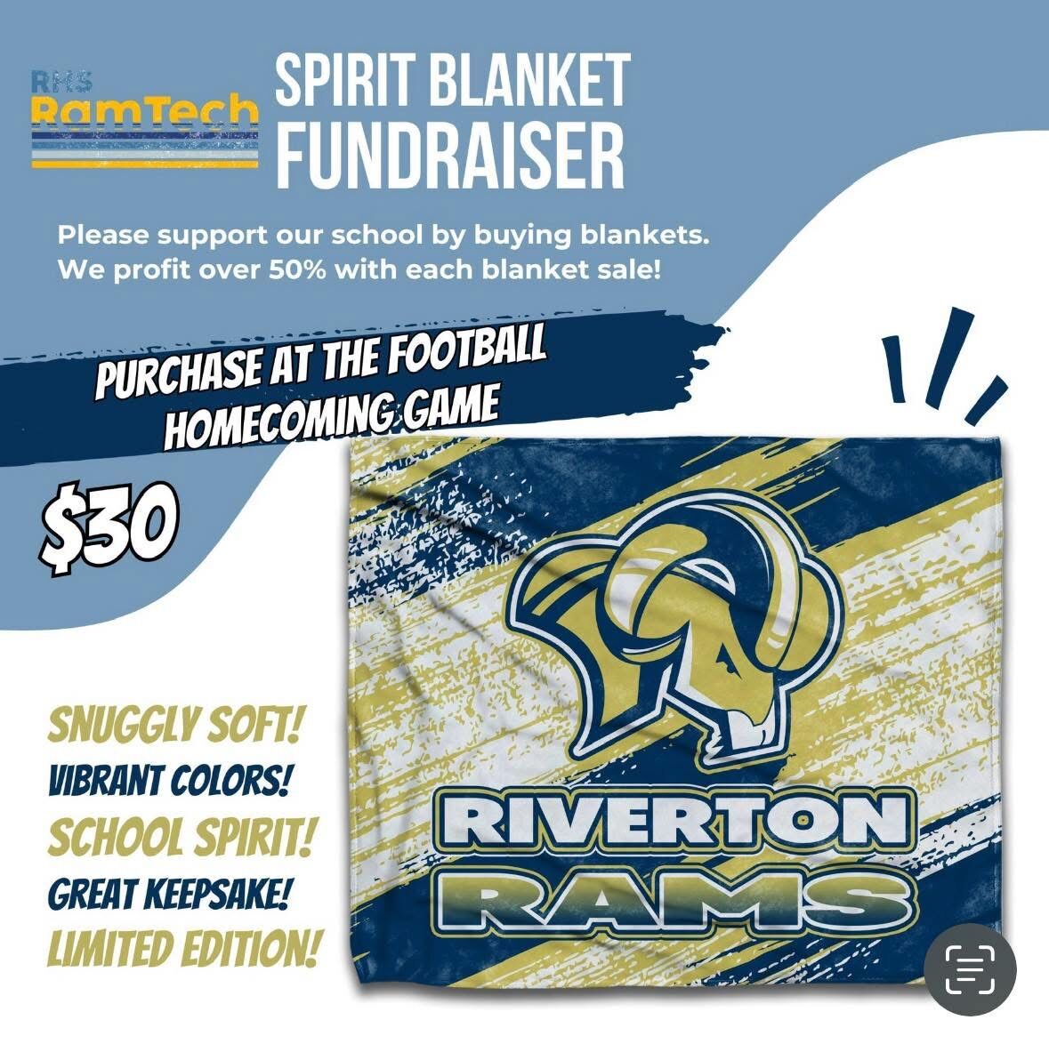 Stay warm and show your school spirit! Riverton High Schools RamTECH Business Class is selling Riverton Ram fleece blankets for just $30 each. First come, first served no pre-orders! Available for p. . .
