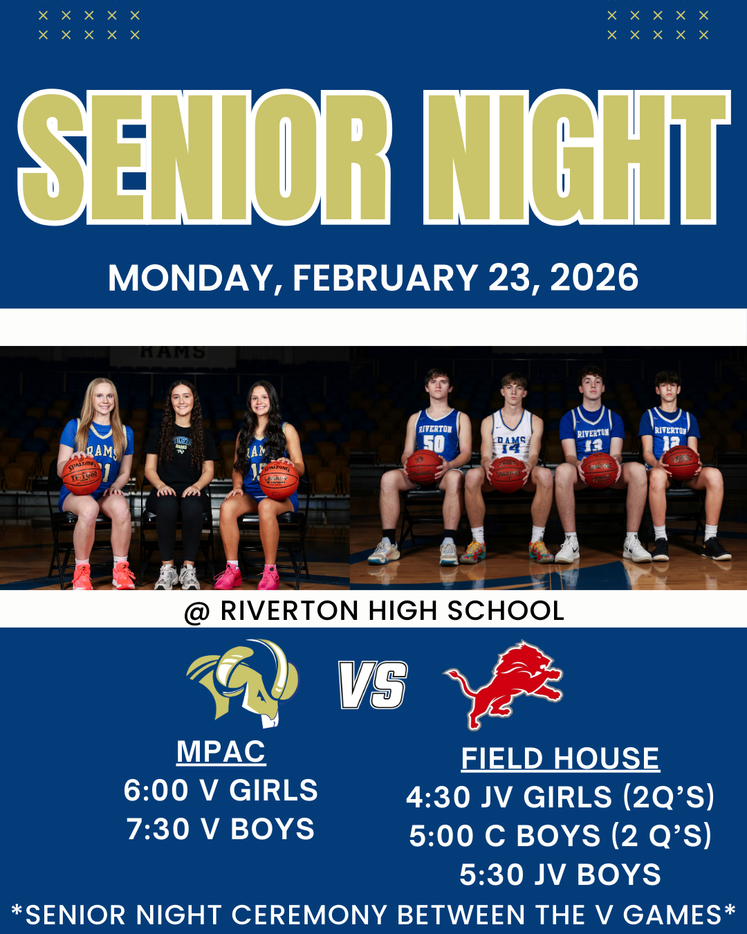 Senior Night🗓️Monday, February 23, 2026📍Riverton High School📹https://fan.hudl.com/.../org.../6328/riverton-high-school...📸5 Star Media
