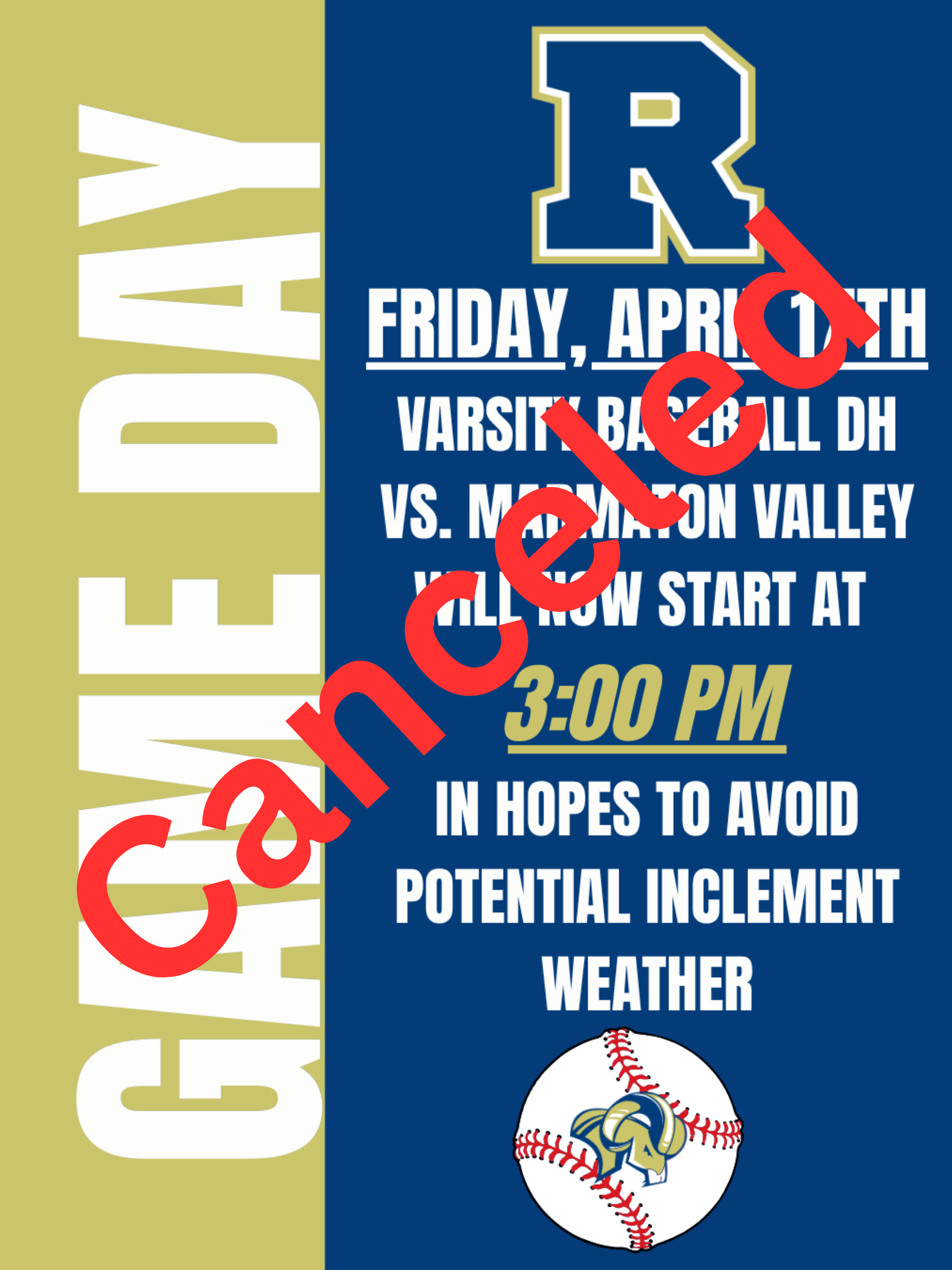 4/17 Baseball UPDATE: Games have been canceled due to threat of inclement weather!