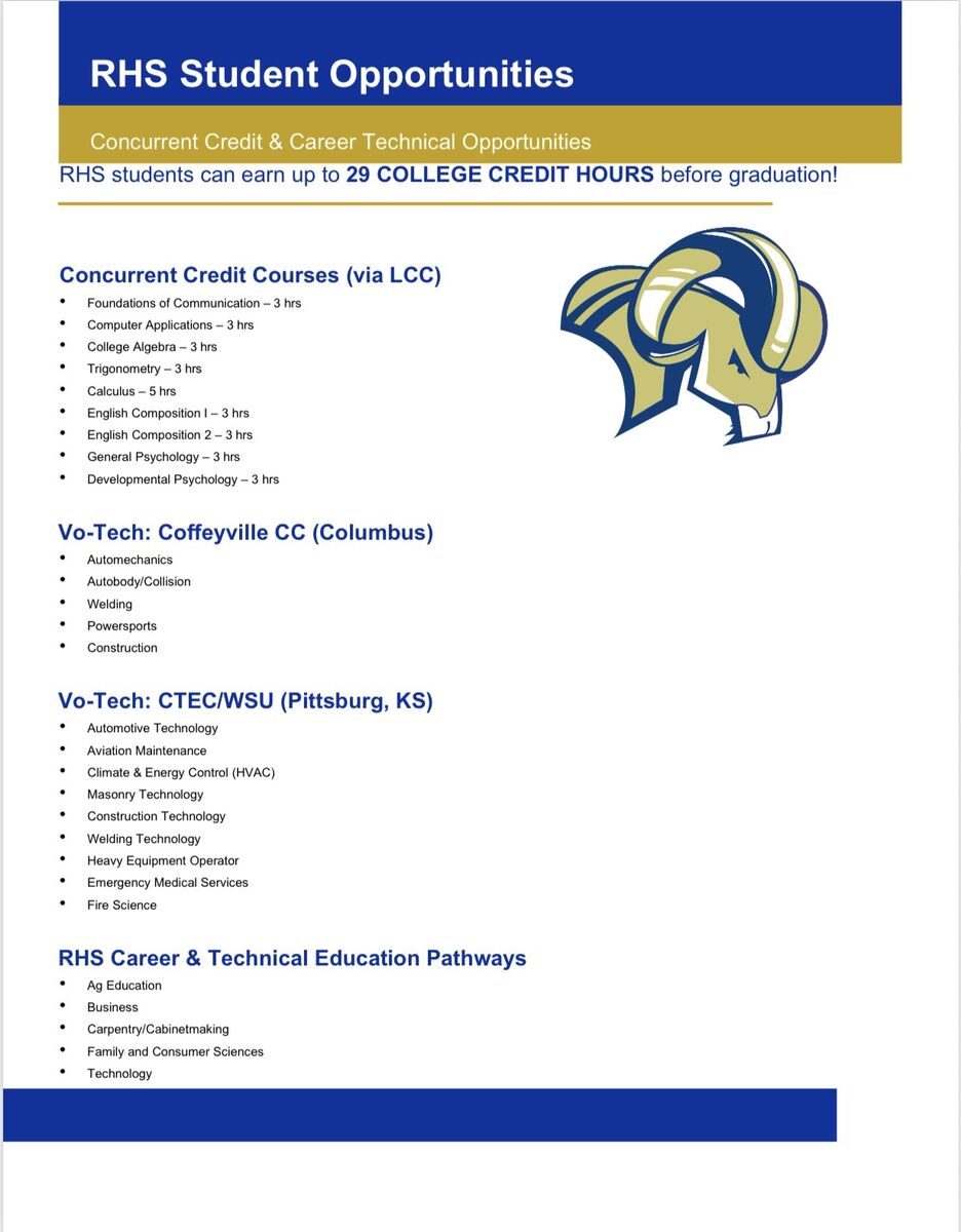 While you and your child are considering RHS enrollment for next year, be aware of the student opportunities offered.