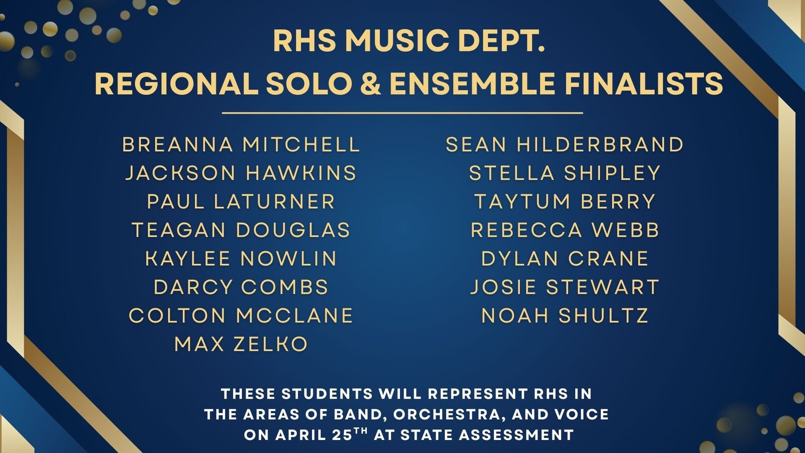 These students competed for ratings of prepared solo & ensemble performance scores at Pittsburg State University on Saturday, March 28th. Congratulations to all!