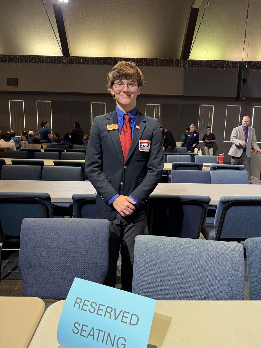 Winner of the KS TSA State Pin Design Contest is Noah Shultz with a design including the State Fossil, Tylosaurus.